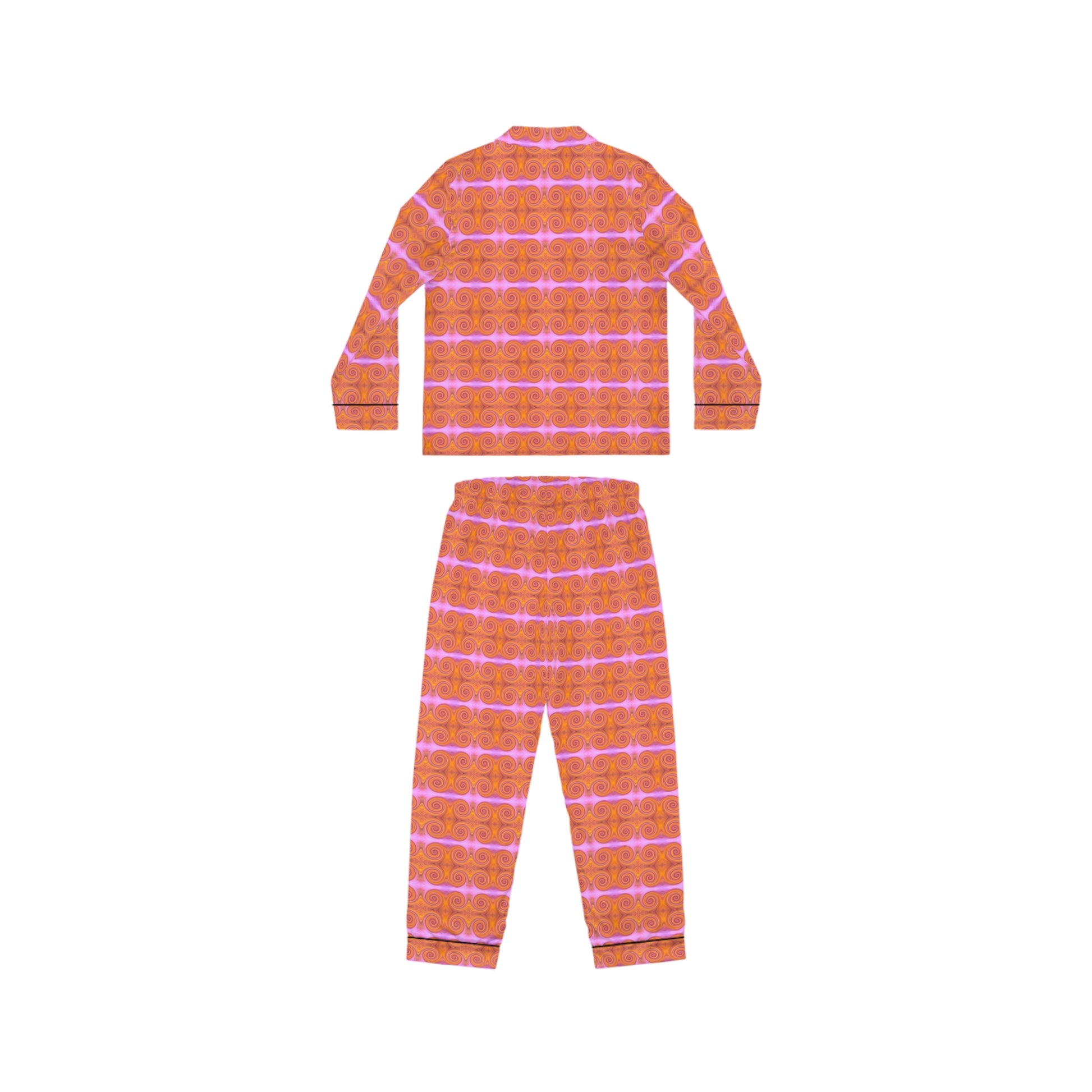 Sleek and silky, these satin pajamas elevate any nighttime ritual. Featuring artwork from the Imaginature Cotton Candy Collection, this design explores a surreal palette of pink and orange inspired by wildflower in a serene, grassy pasture. The notch lapel and adjustable drawstring waist add a tailored touch while keeping the silhouette relaxed. Since the style runs small, please refer to the size chart. We recommend sizing up 1-2 sizes for the perfect fit.