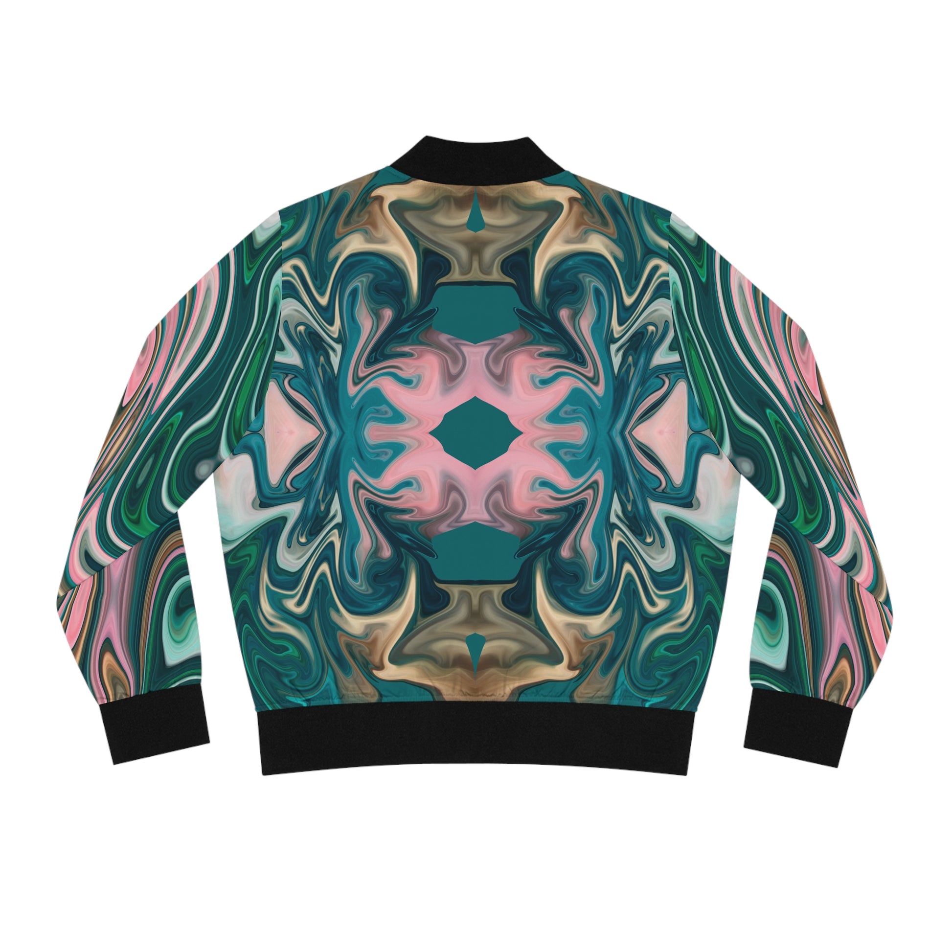 Few items are as iconic as the bomber jacket - and this one takes things to a whole new level. Featuring artwork from the Imaginature™ Garden Party Collection, this design evokes tones, blush pinks, and layered greens inspired by a garden landscape reimagined in teal.Styled with ribbed cuffs, collar, and hem, this jacket brings a cool, contemporary edge to a classic silhouette.