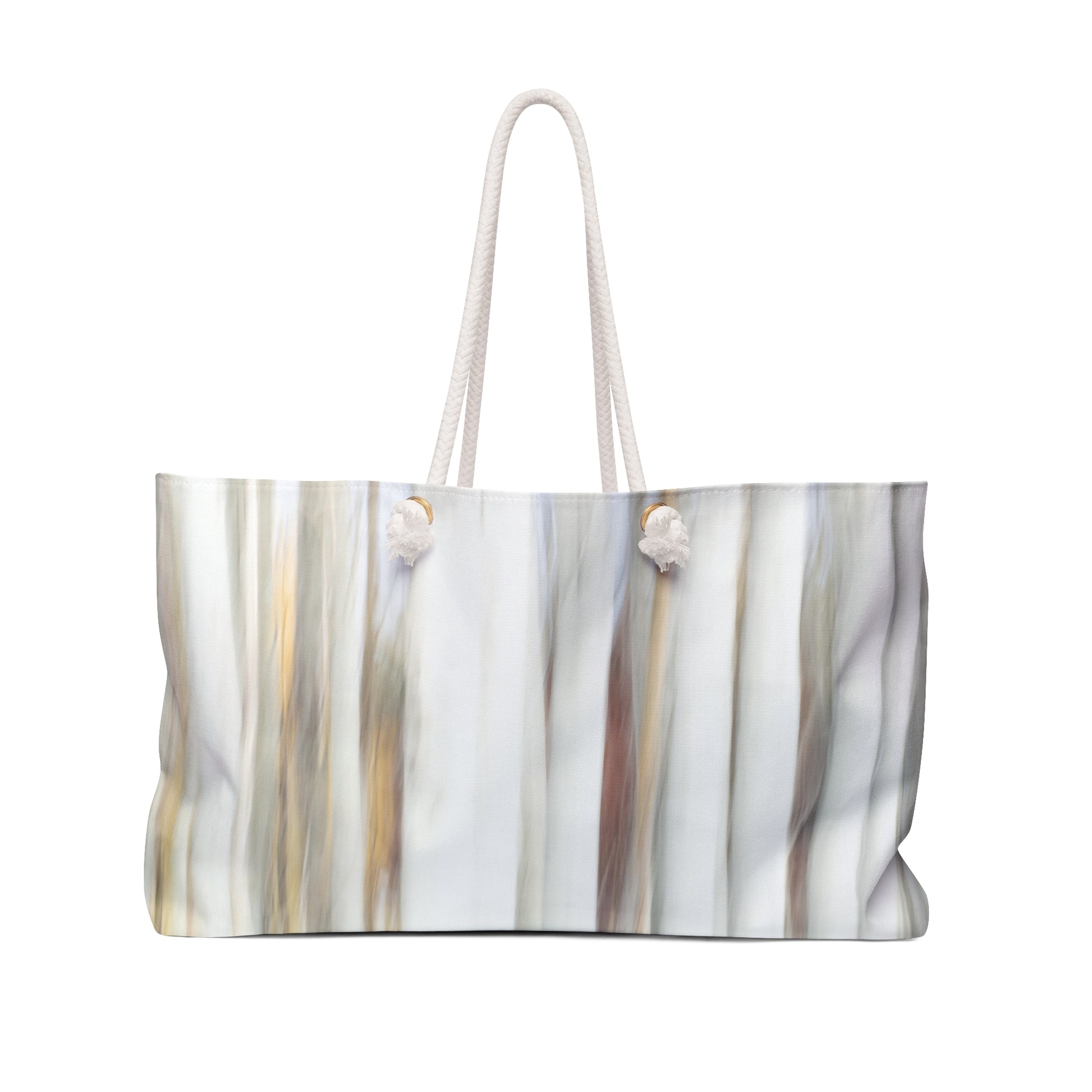 This oversized weekender tote is designed for effortless getaways, whether you’re heading to the beach or exploring the city. Featuring artwork from the Imaginature™ Majestic Collection, this design explores the subtle contrast and composition inspired by a stand of aspen trees atop a snow-covered pristine landscape.